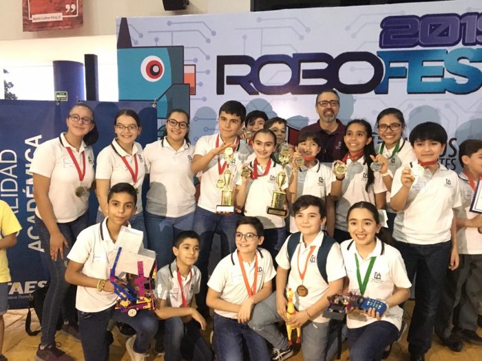 Felicitamos a los equipos de Primaria y Secundaria que nos representaron en Robofest 2019 el cual se llevó a cabo en TAES el pasado mes de abril. Alumnos de quinto grado obtuvieron 3er lugar en la prueba Jugador de Fútbol; sexto grado de Primaria obtuvo 1er lugar en la prueba Seguidor de Línea y 2º lugar en Luchador de Sumo; alumnos de Secundaria obtuvieron 1er lugar en la prueba de Montacargas, apoyados por alumnos de Primaria.