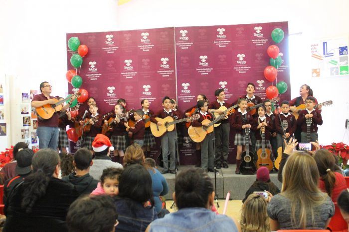 El pasado jueves 14 de diciembre de 2017 acudimos con mucha alegría al CRIT SONORA, para acompañar a los niños y jóvenes que reciben en él sus terapias, en la posada que les organizó el centro. Los niños de la http://Rondalla de colegio americano del pacifico los deleitaron con algunas de sus más lindas canciones, acompañados de sus papás y directores de la rondalla. Con mucho cariño compartieron con los niños paquetitos de galletas elaborados especialmente para ellos así como dulces. No podía faltar la presencia de Santa, que llegó con su gran costal a repartir regalos a todos los niños ya que se han portado excelentemente. Esta oportunidad de acompañarlos nos llena de gozo y alegría el corazón, porque al regalar un poco de nuestro tiempo y amor le da a la Navidad un sentido especialmente hermoso.